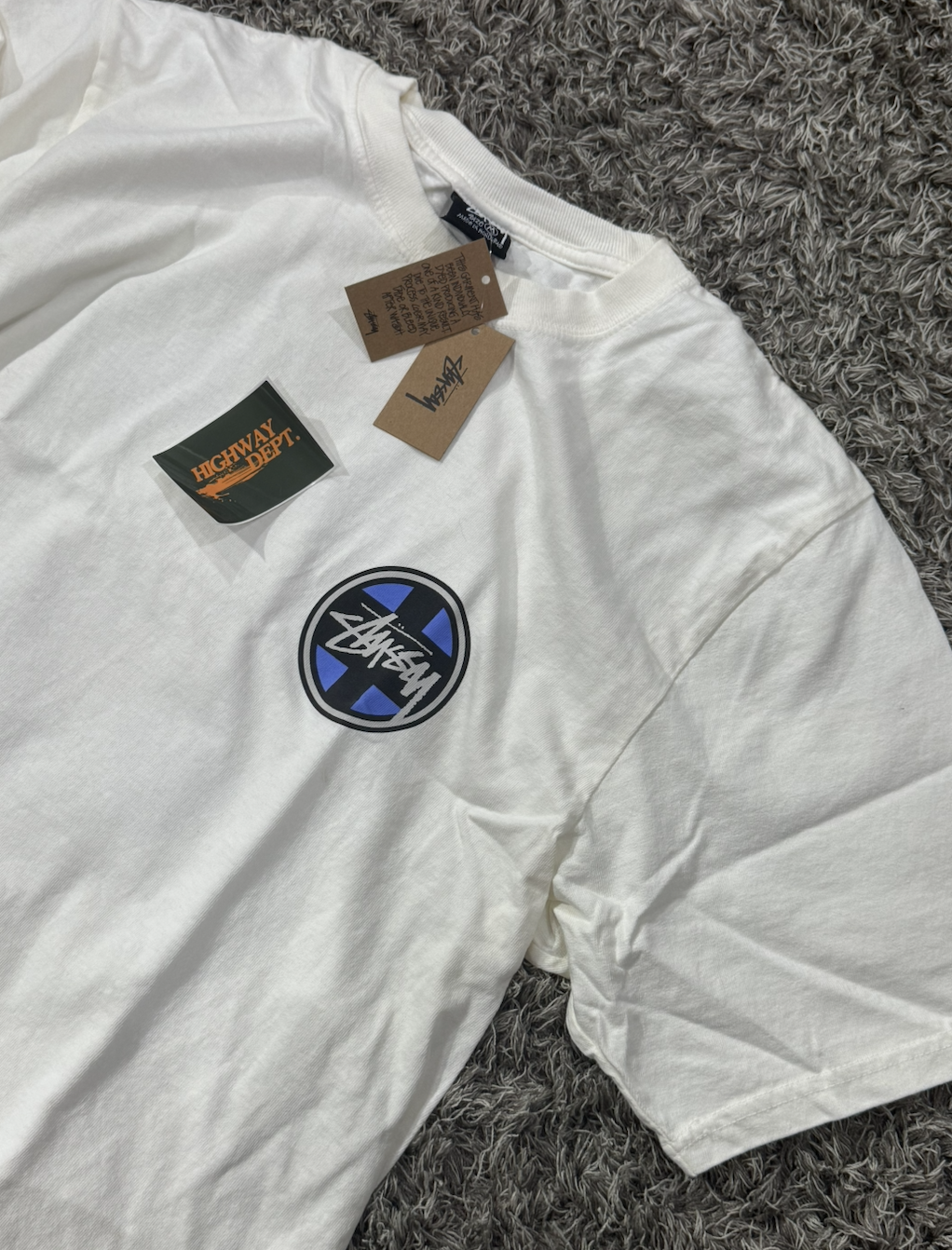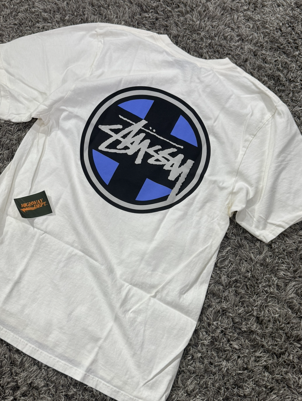 STUSSY CROSS DOT TEE PIGMENT DYED 十字藍色圓圈白色短袖
